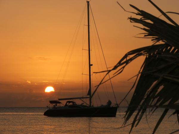 Le temps de descendre notre annexe et de remettre le moteur et hop, quelques clichés du bateau avant d'atteindre la plage Il est beau notre bateau, et il nous a mené loin.