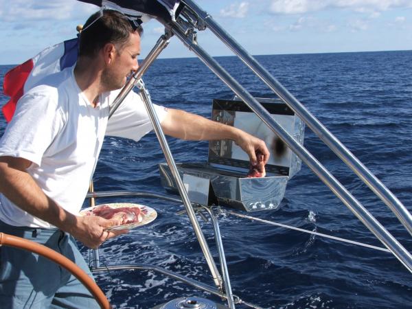 Après avoir déjeuner, chacun somnole plus ou moins, quand soudain un sifflement, il s'agit du bruit du fil de la canne à pêche qui défile à toute allure … Non incroyable, un poisson semble enfin avoir croisé notre route