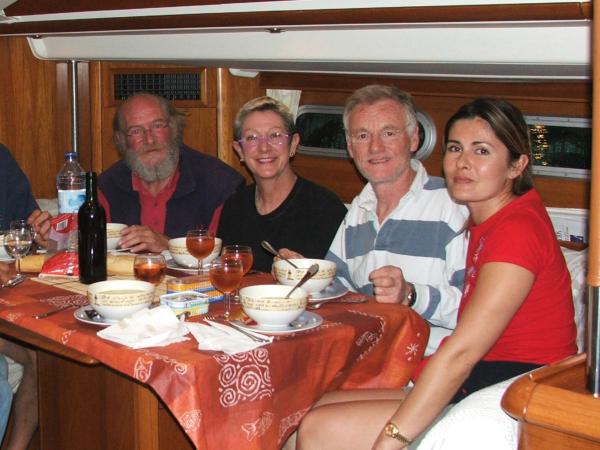 Le soir, Nono sa femme, Cécile, et Alain viennent nous rendre visite, Apéro bien sur, puis à nouveau Apéro mais cette fois sur leur bateau, puis retour sur notre bateau et soupe.