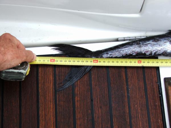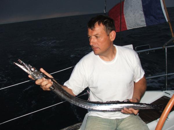 Xavier l'a débité en conservant la tête et mis au congel, nous le montrerons aux pêcheurs locaux du Cap Vert, nous avons décidé d'y aller car la pétole dure (pétole = pas de vent).