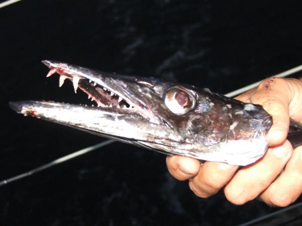 Voici ce que Xavier a pêché ce matin, le 14/12/2005, à ce rythme on va remplir le congel en vitesse, une charmante petite bête, qu'est ce que c'est d'après toi, je te laisse chercher, tu me le diras ? Dans tous les cas une chose est sur il ne s'agit pas d'un barracuda