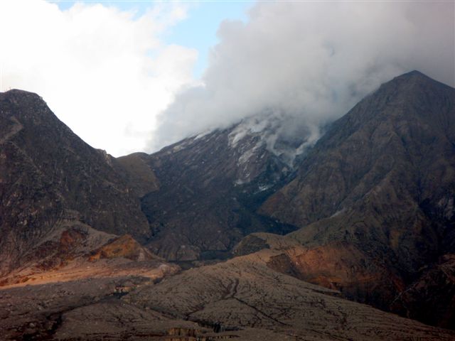 Nous passons à côté de la zone d'exclusion, le volcan est toujours en activité. Des cratères impressionnants ont été formés ... "Spectacle surréaliste" ...