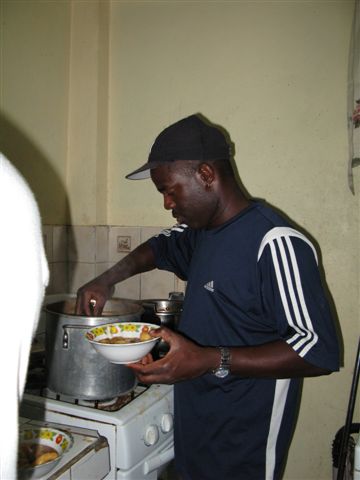 Jeff est en pleine préparation de la soupe au Manicou, en même temps il m'explique en détail toute la recette ...