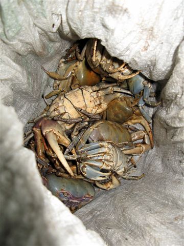 Ici crabes de rivières attrapés la nuit ... Ils sont plutôt énormes