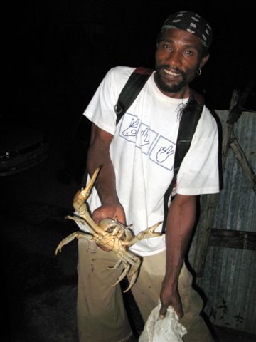 Div nous entraînne dans une des nombreuses rivières et à l'aide de sa lampe torche repère les ouassous (grosses écrevisses d'eau douces), dés qu'il voit les yeux briller dans malgré le courant, et hop un coup de machette et il attrape les ouassous ... je suis impressionné.