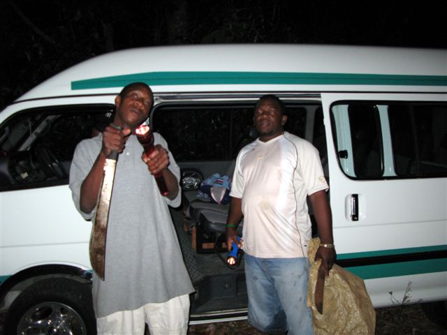 Vers 19H00 Jeff Vient nous chercher et nous prenons sa voiture, il a emmené deux de ses amis et Div un Dominicain ayant une grande connaissance de la forêt, car nous allons chasser de nuit le Manicou.