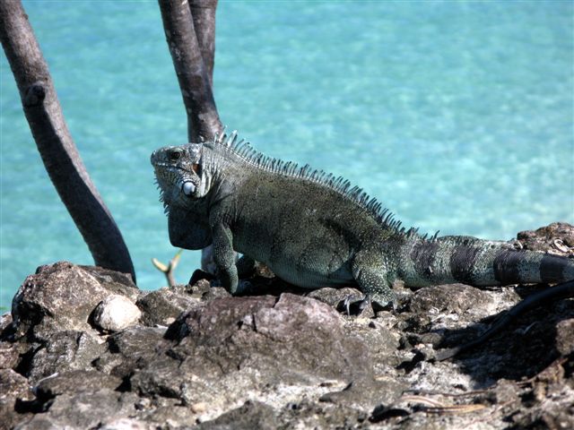 Nous continuons notre trip, nous dirigeant vers une petite crique où les iguanes se promenent jusqu'à la plage.