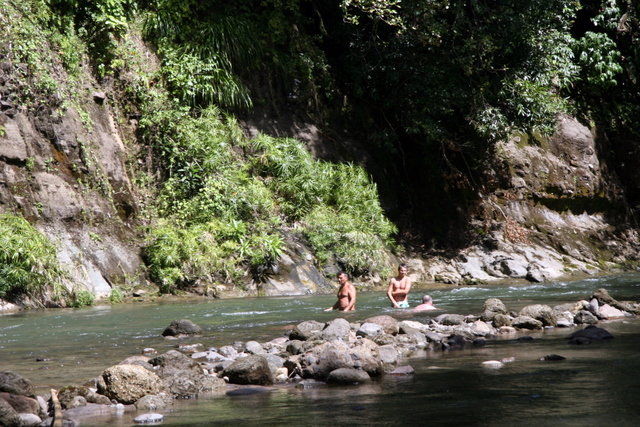 C'est que pour accéder à la source d'eau chaude il faut juste traverser la rivière ... Et il y a pas mal de courant et de fond, donc tout à la nage.