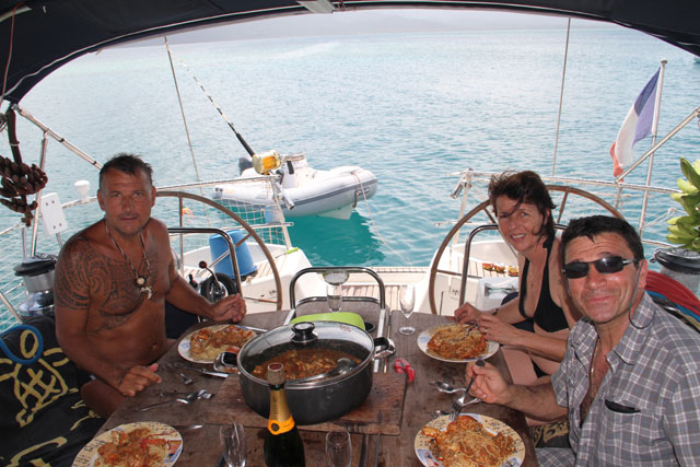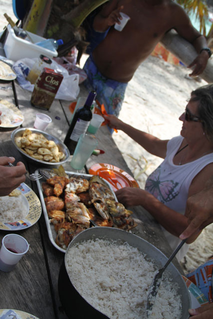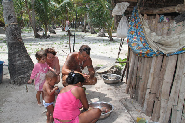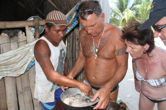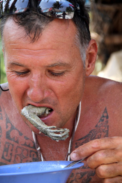Puis l'iguane est préparé au lait de coco !!! Tout le monde va goûter, ou presque, sauf JP