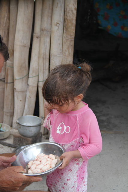Ina, notre ami Kuna, a attrapé un Iguane, voici ses oeufs qu'ils vont